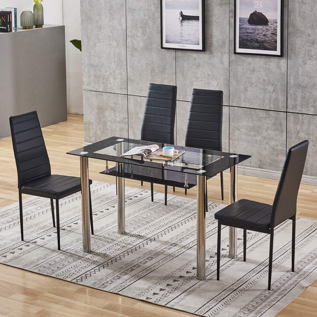 Buy Black Dining Table And Chairs Set 5 Piece Tempered Glass Top Table And Pu Leather Chairs Of 4 For Small Kitchen Dining Room Living Room Online In Kenya B08mvzw5vx from m.media-amazon.com Maybe you would like to learn more about one of these? Check spelling or type a new query. We did not find results for: Black metal kitchen table&chairs leather pants.